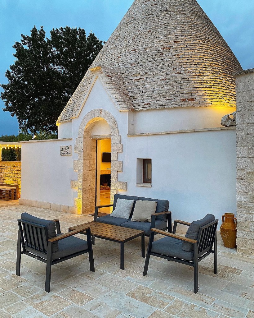 Mi sento di consigliare questa sistemazione a chi viaggia in famiglia o a chi viaggia con bambini piccoli. Il trullo infatti è dotato di un letto matrimoniale posizionato su un soppalco e di un divano letto al piano terra che può ospitare fino a due persone. Troviamo poi una cucina e un bagno con vasca e doccia e si trova vicino alle principali attrazioni che abbiamo visitato durante la nostra settimana di permanenza, tutte ad una distanza massima di un’ora. Senza tralasciare poi la comodità di avere un’area esterna tutta per noi, per rilassarci la mattina dopo colazione o la sera prima di cena. Ho preferito optare per una casa privata piuttosto che un hotel, essendo la prima esperienza di viaggio con una neonata, in questo modo abbiamo potuto vivere questa vacanza con i nostri tempi e senza fretta. Per non parlare del silenzio e della tranquillità in cui era immersa la casa… un sogno! 🤩