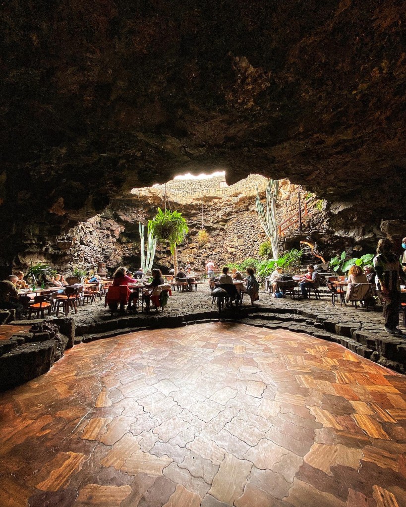 Il Giardino dei Cactus è la prima attrazione che abbiamo visitato, progettata proprio da Manrique. Qui l’artista vide un potenziale all’interno di quella che era una semplice cava di pietrisco e realizzò questo spazio che attualmente raccoglie circa 4.500 esemplari di 450 specie differenti di cactus, raggruppati in 13 famiglie e giunti dai cinque continenti. Il verde delle piante contrasta con l’azzurro del cielo e il nero del vulcano, creando un ambiente molto suggestivo. Da non perdere!