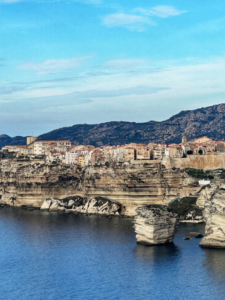 Puntando verso sud, situata all’estremità meridionale della Corsica, Bonifacio è una perla incastonata tra il cielo azzurro e le acque cristalline del mare. Ciò che rende questa città unica sono le sue maestose falesie, opere d’arte scolpite dalla natura nel corso di millenni, che offrono uno spettacolo visivo senza pari. Alte pareti di calcare si ergono verticali sul mare, creando un paesaggio impressionante. Le scogliere, con i loro colori che variano dal bianco al rosa, formano una cornice perfetta per il panorama marino circostante.